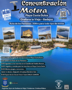 Una iniciativa que pretende animar a concentrarse a los moteros no sólo de Orellana la Vieja, sino de toda la zona. Para la quedada motera de este domingo, fácil y para todos los públicos, no hace falta apuntarse. El itinerario, con salida y llegada a Orellana la Vieja, incluye varias paradas en restaurantes y cafeterías, así como en la Piscina Natural de La Calera, en pleno Geoparque Mundial UNESCO VIlluercas-Ibores-Jara. Además, ya tienen las camisetas que se entregarán a quienes las hayan pedido.